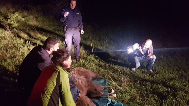 Κλιμάκιο ειδικών, στο πλαίσιο του πρωτοκόλλου για την αντιμετώπιση περιστατικών αλληλεπίδρασης ανθρώπου και αρκούδας, προσέγγισε το ζώο και το νάρκωσε. Διαπίστωσαν μάλιστα, όπως αναφέρεται και σε σχετική ανακοίνωση από την «Καλλιστώ», ότι κατά τη διάρκεια του εγκλωβισμού του, το άτυχο ζώο είχε στρεσαριστεί και μασούσε τον κορμό του δέντρου όπου είχε εγκατασταθεί η θηλιά, στην προσπάθειά του να διαφύγει.