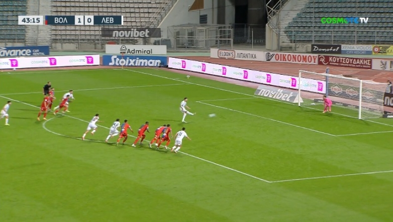 Ο Λεβαδειακός κατάφερε στο 44′ να κάνει το 1-1 κόντρα στον Βόλο, με τον Όζμπολτ να ευστοχεί σε πέναλτι που δόθηκε για χέρι του Κόμπα.