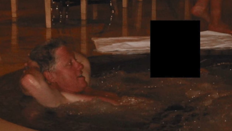 Η εικόνα δείχνει τον Κλίντον και τη Μαξγουέλ στην πισίνα μαζί με ένα ακόμη άτομο, η ταυτότητα του οποίου έχει αποκρυφθεί με μαύρο ορθογώνιο. Μια άλλη φωτογραφία δείχνει τον Κλίντον μαζί με τον Έπσταϊν. Δεν υπάρχει καμία υπόνοια ότι ο Κλίντον έκανε κάτι παράνομο.