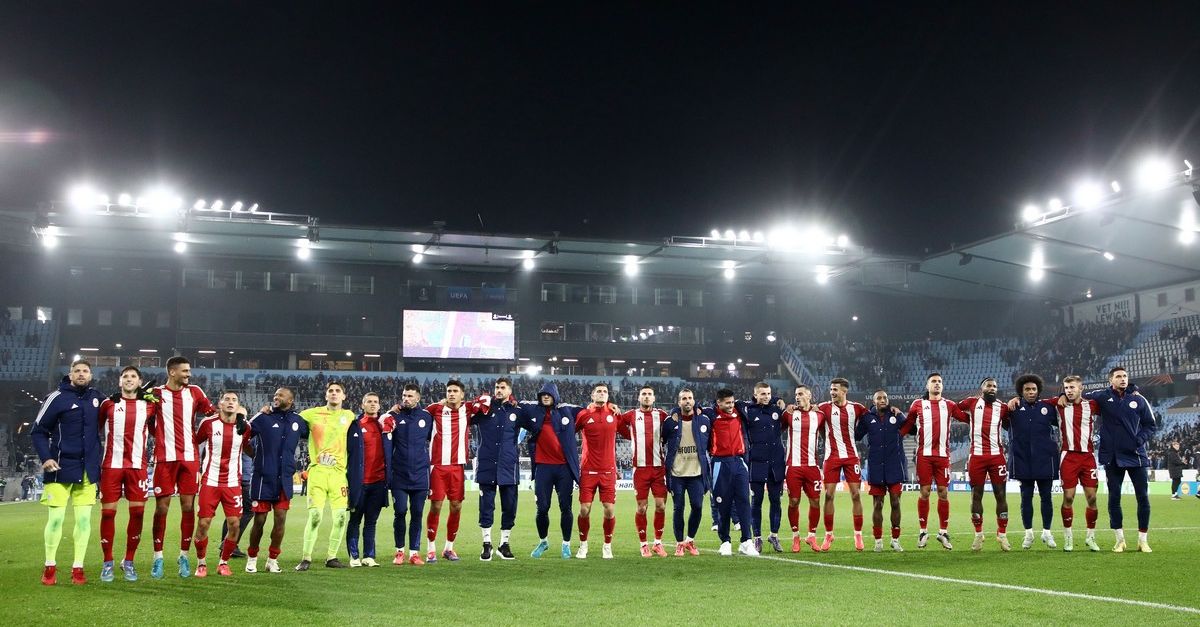 Οι παίκτες του Ολυμπιακού πανηγύρισαν με τον κόσμο τους τη νίκη επί της Μάλμε για την 3η αγωνιστική της League Phase του Europa League.