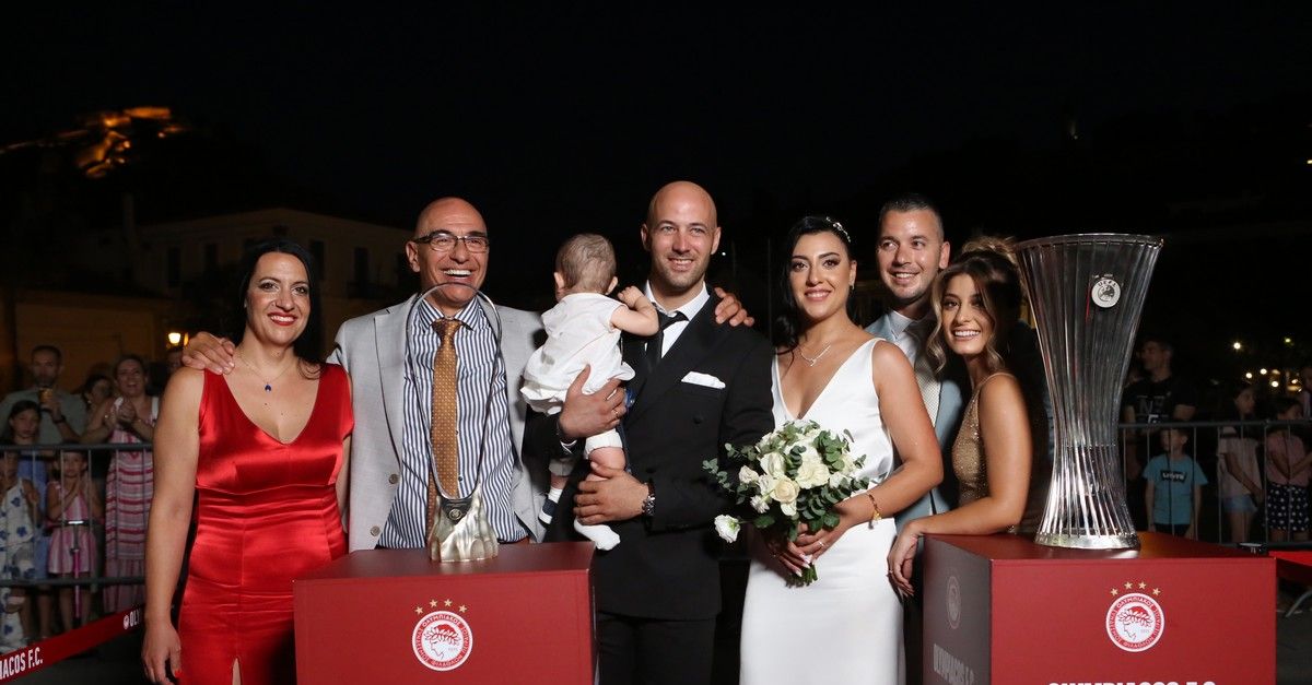 Τα τρόπαια του Conference League και του Youth League βρέθηκαν στο Ναύπλιο και μεταξύ των φιλάθλων του Ολυμπιακού που πήγαν για να τα δουν από κοντά, βρέθηκε και ένα νιόπαντρο ζευγάρι που έβγαλε φωτογραφίες με αυτά.