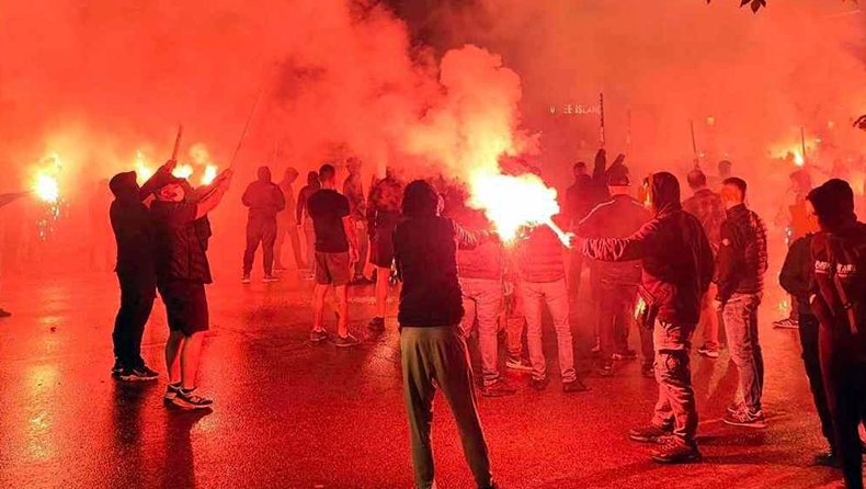 Τις πρώτες πρωινές ώρες οπαδοί του ΠΑΟΚ συγκεντρώθηκαν στην περιοχή της Καμάρας και με δεκάδες πυρσούς έκαναν τη… νύχτα-μέρα!