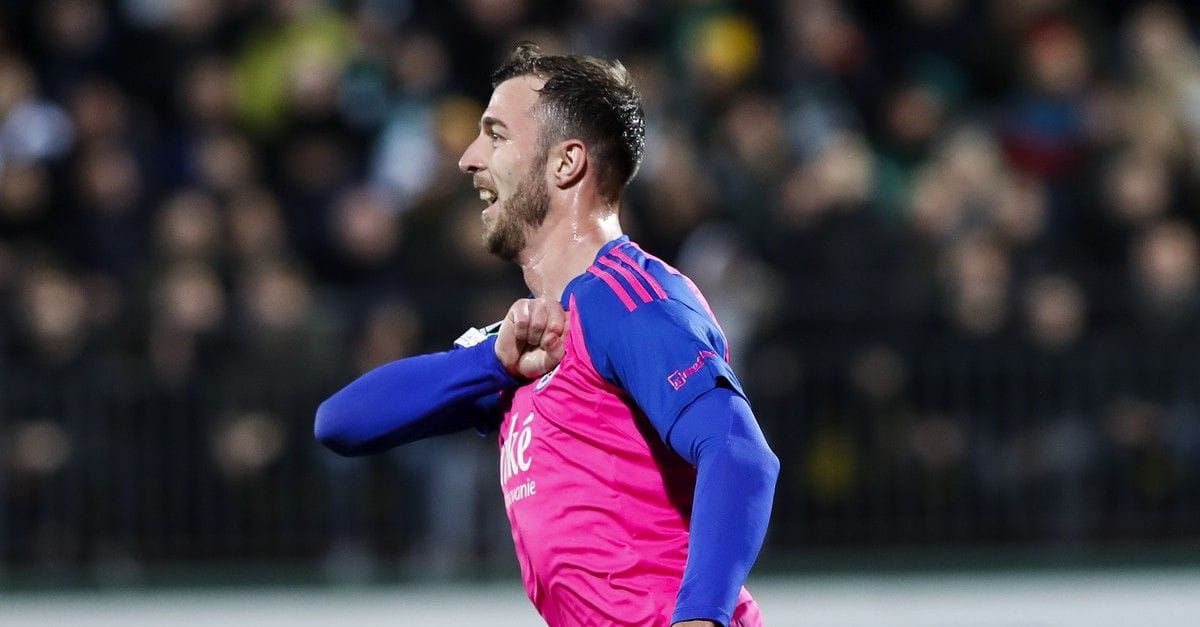 Ο Αλεκσάνταρ Κάβριτς πανηγυρίζει γκολ με τη φανέλα της Σλόβαν Μπρατισλάβας απέναντι στην Ζάλγκιρις Βίλνιους | 3 Νοεμβρίου 2022
