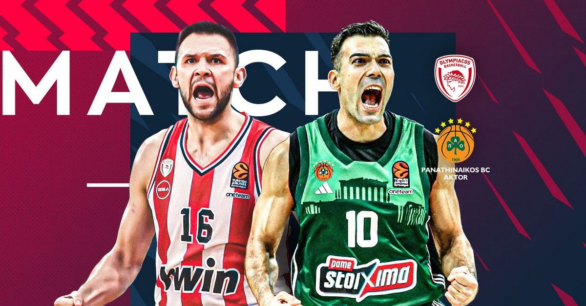 Ο Ολυμπιακός υποδέχεται τον Παναθηναϊκό AKTOR για την 29η αγωνιστική της EuroLeague. LIVE η εξέλιξη του αγώνα στο Matchcenter του SPORT24.